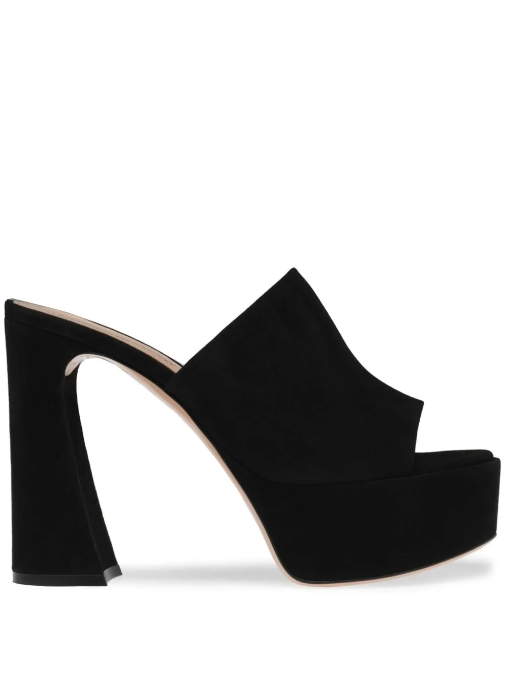 Holly 70mm platform suede mules Highlights - Black - Calf suede - Round open toe - Branded leather insole - Leather sole - Slip-on style - Platform sole - 70mm high block heel Made in Italy Composition Suede 100%