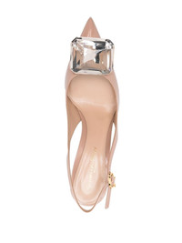 jewel-detail 95mm stiletto pumps almond beige calf leather decorative toe detail slingback strap 95mm high stiletto heel Made in Italy Composition Sole: Calf Leather 100% Lining: Calf Leather 100% Outer: Patent Calf Leather 100% SIZE & FIT Measurement HEEL 3.34 in(8.5 cm)