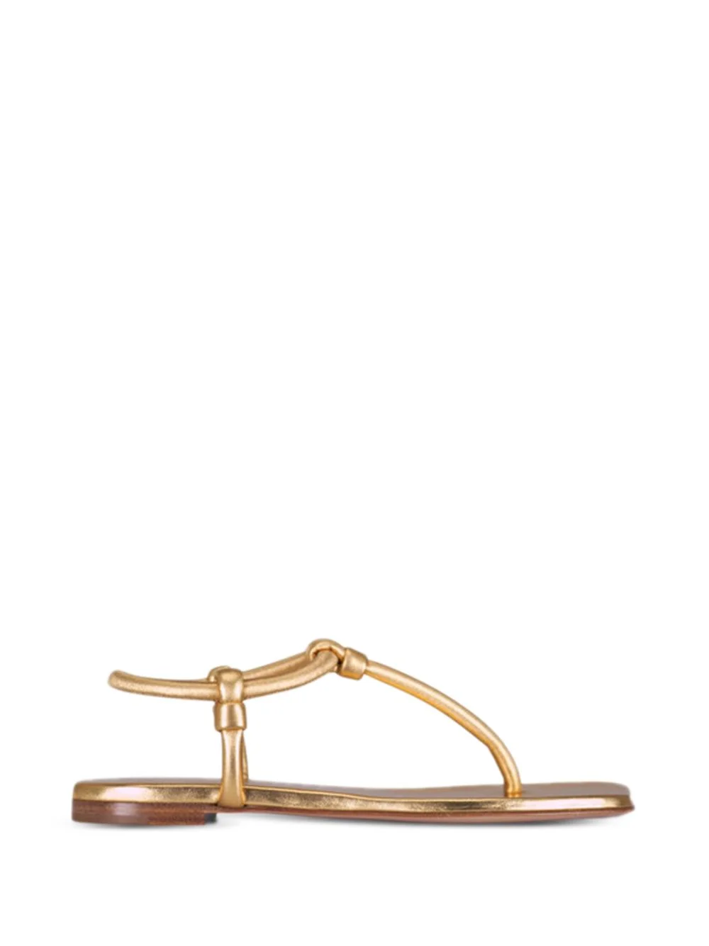 knotted flat sandals Highlights - Gold-tone - T-strap - Round toe - Knotted detailing - Flat sole Made in United States Composition Top: Fabric 100% Lining: Fabric 100%