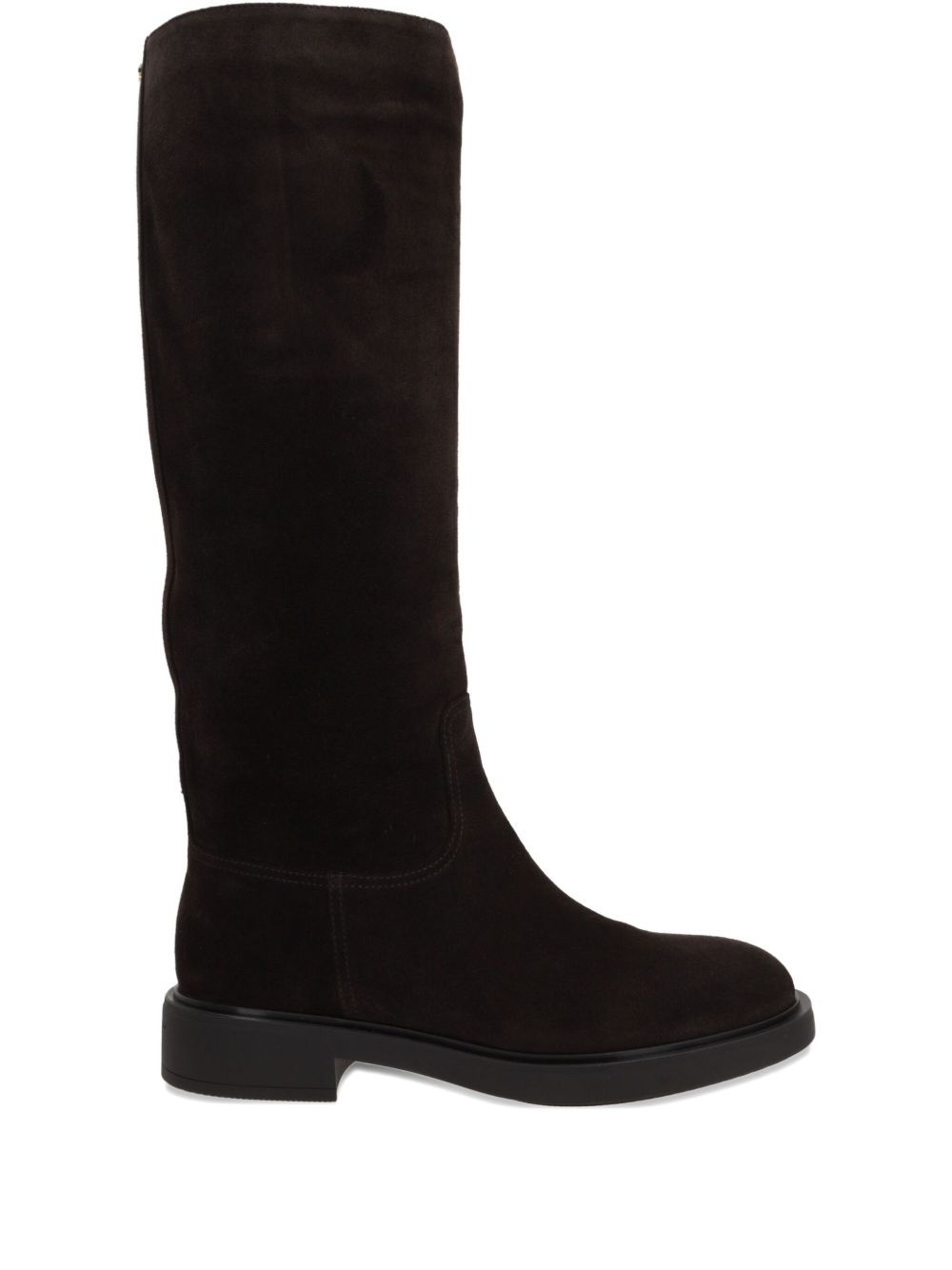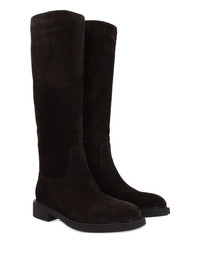 leather knee-high boots Highlights - Cedar brown - Slip-on style - Rubber sole - Branded insole - Round toe Made in Italy Composition Outer: Suede 100% Lining: Calf Leather 100% Sole: Rubber 100%