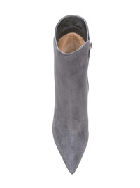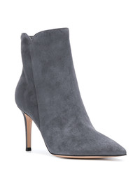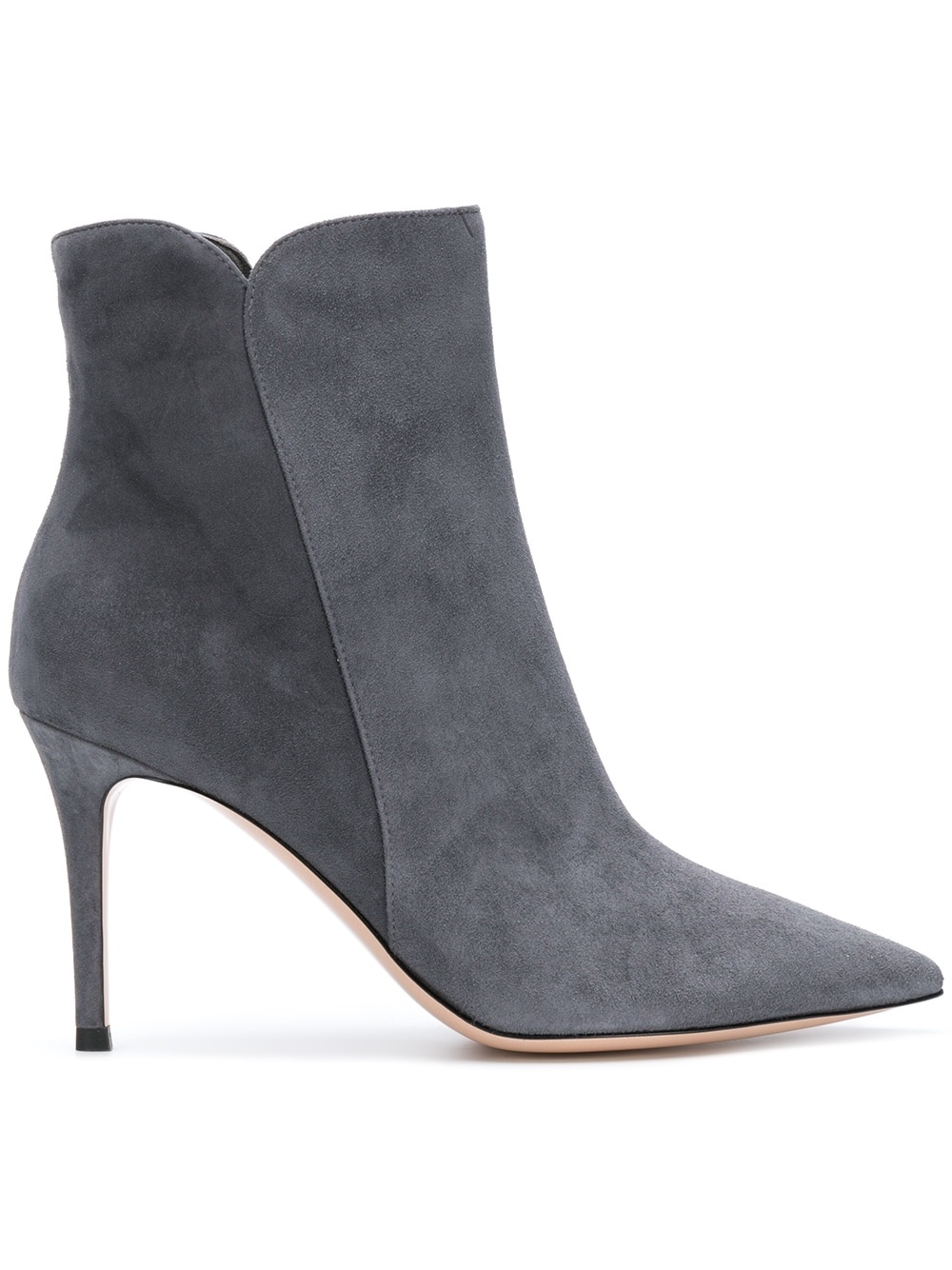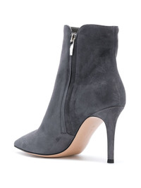 Levy 85mm suede ankle boots Italian shoe designer Gianvito Rossi founded his eponymous label in 2006 after working closely alongside his father, cherished shoemaker Sergio Rossi. Considered alluring, feminine and strong, Gianvito Rossi creates collections that speak to his legions of fans; designing footwear with a focus on expert craftsmanship and luxury materials. Crafted from suede, these Levy boots feature a pointed toe, a high heel, an ankle length, a slip-on style and a side zip fastening. Highlights - Grey - Suede - Side slit - Panelled design - Side zip fastening - Pointed toe - Branded leather insole - 85mm stiletto heel Made in Italy Composition Suede 100% SIZE & FIT FittingInformation This piece fits small – take one size up Measurement HEIGHT 4.33 in(11 cm) HEEL 3.34 in(8.5 cm) CIRCUMFERENCE 8.66 in(22 cm)