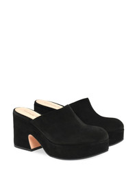 Lyss 55mm mules Highlights - Black - Suede - Round toe - Open back - Slip-on style - Platform sole - 55mm block heel Made in Italy Composition Suede 100% SIZE & FIT Measurement HEEL 2.16 in(5.5 cm)