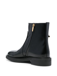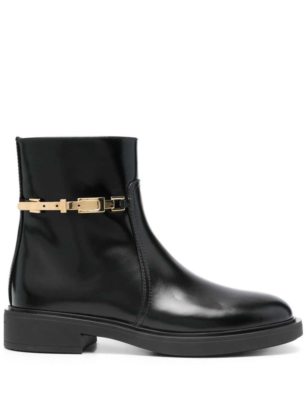 Martine boots Highlights - Black - Calf leather - Polished effect - Stacked heel - Side zip fastening - Ankle-length - Decorative buckle detail - Round toe - Branded leather insole - Leather sole Made in Italy Composition Leather 100% SIZE & FIT Measurement CIRCUMFERENCE 9.84 in(25 cm) HEEL 1.37 in(3.5 cm) HEIGHT 5.7 in(14.5 cm) Sole height 0.78 in(2 cm)
