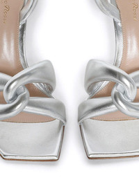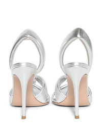 100mm metallic leather sandals Highlights - Silver-tone - Calf leather - Metallic finish - Slingback strap - Branded footbed - Padded straps - High stiletto heel - Square toe Imported Composition Sole: Calf Leather 100% Lining: Calf Leather 100% Outer: Metallic Leather 100%