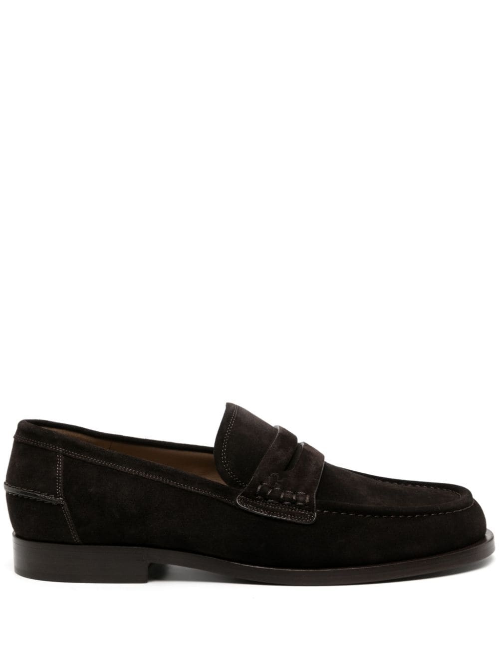 Michael suede loafers Highlights - Mocha brown - Suede - Calf leather - Tonal stitching - Penny slot - Logo at the sole - Round toe - Suede lining - Branded leather insole - Leather outsole Made in Italy Composition Outer: Suede 100% Lining: Calf Leather 100% Sole: Calf Leather 100% SIZE & FIT Measurement HEEL 0.86 in(2.2 cm)