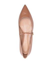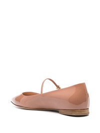 pointed-toe buckle-strap ballerina shoes GIANVITO ROSSI taps into timeless silhouettes and tonal colourways for AW23, as shown by these beige ballerina shoes. Made from smooth calf leather in a patent finish in Italy, the pair is secured with a front buckle fastening. Highlights - Sand beige - Calf leather - Patent finish - Pointed toe - Single toe strap - Buckle fastening - Branded insole - Flat leather sole Made in Italy Composition Outer: Patent Calf Leather 100% Sole: Calf Leather 100% Lining: Calf Leather 100% SIZE & FIT Measurement HEEL 0.59 in(1.5 cm)