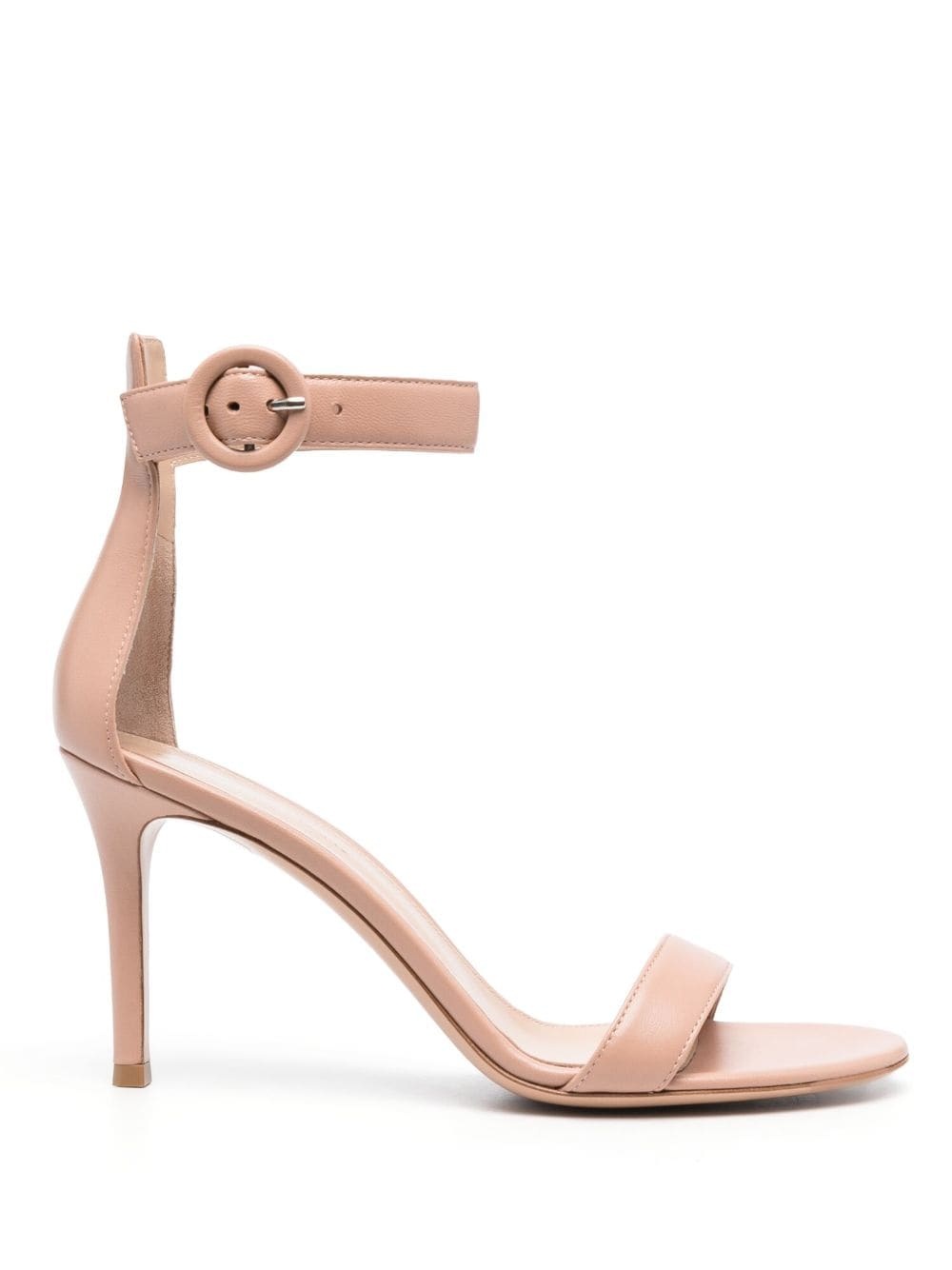 Portofino 100mm leather sandals A love for footwear runs in Gianvito Rossi's family, with his father being fellow shoe designer, Sergio Rossi. The Portofino sandals are a take on a classic silhouette. Imagined in beige suede, they are set atop an 85mm stiletto heel. Highlights - Blush beige - Calf leather - Open toe - Almond toe - Buckle-fastening ankle strap - Branded insole - High stiletto heel Made in Italy Composition Sole: Calf Leather 100% Outer: Calf Leather 100% Lining: Calf Leather 100% SIZE & FIT Measurement HEEL 3.34 in(8.5 cm) CIRCUMFERENCE 8.66 in(22 cm) HEIGHT 4.33 in(11 cm)