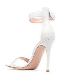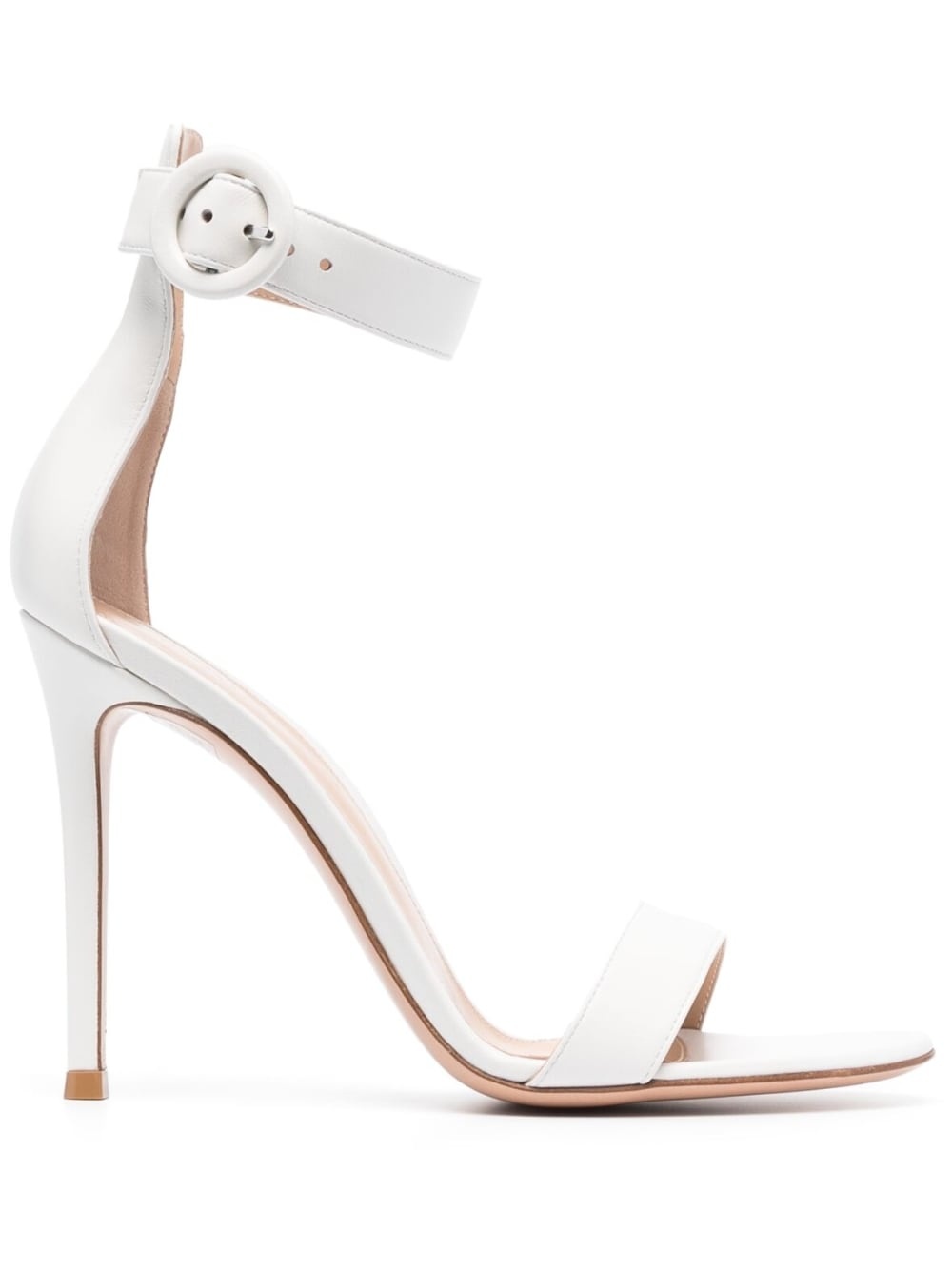 Portofino 105mm leather sandals Gianvito Rossi's Portofino sandals are one of the brand’s most distinctive styles. Handcrafted by skilled artisans in Italy, this white leather pair is grounded on a slender 105mm stiletto heel. Highlights - White - Nappa leather - Buckle-fastening ankle strap - Open toe - 105mm stiletto heel Made in Italy Composition Outer: Nappa Leather 100% Lining: Calf Leather 100% Sole: Calf Leather 100% SIZE & FIT Measurement HEEL 3.93 in(10 cm)