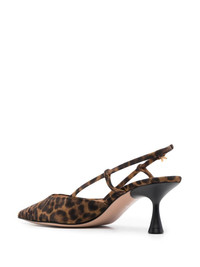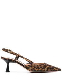 55mm Ascent slingback pumps These pumps from Gianvito Rossi exemplify the label’s propensity for statement footwear. Saturated with leopard spots, the point-toe silhouette is enhanced with a slingback strap and signature Ribbon buckle in gold-tone hardware. Highlights - Brown - Calf suede - All-over leopard print - Pointed toe - Slingback strap - Branded leather insole - Slip-on style - Side buckle fastening - 55mm sculpted heel Made in Italy Composition Suede 100% SIZE & FIT Measurement HEEL 2.75 in(7 cm) HEIGHT 2.36 in(6 cm)