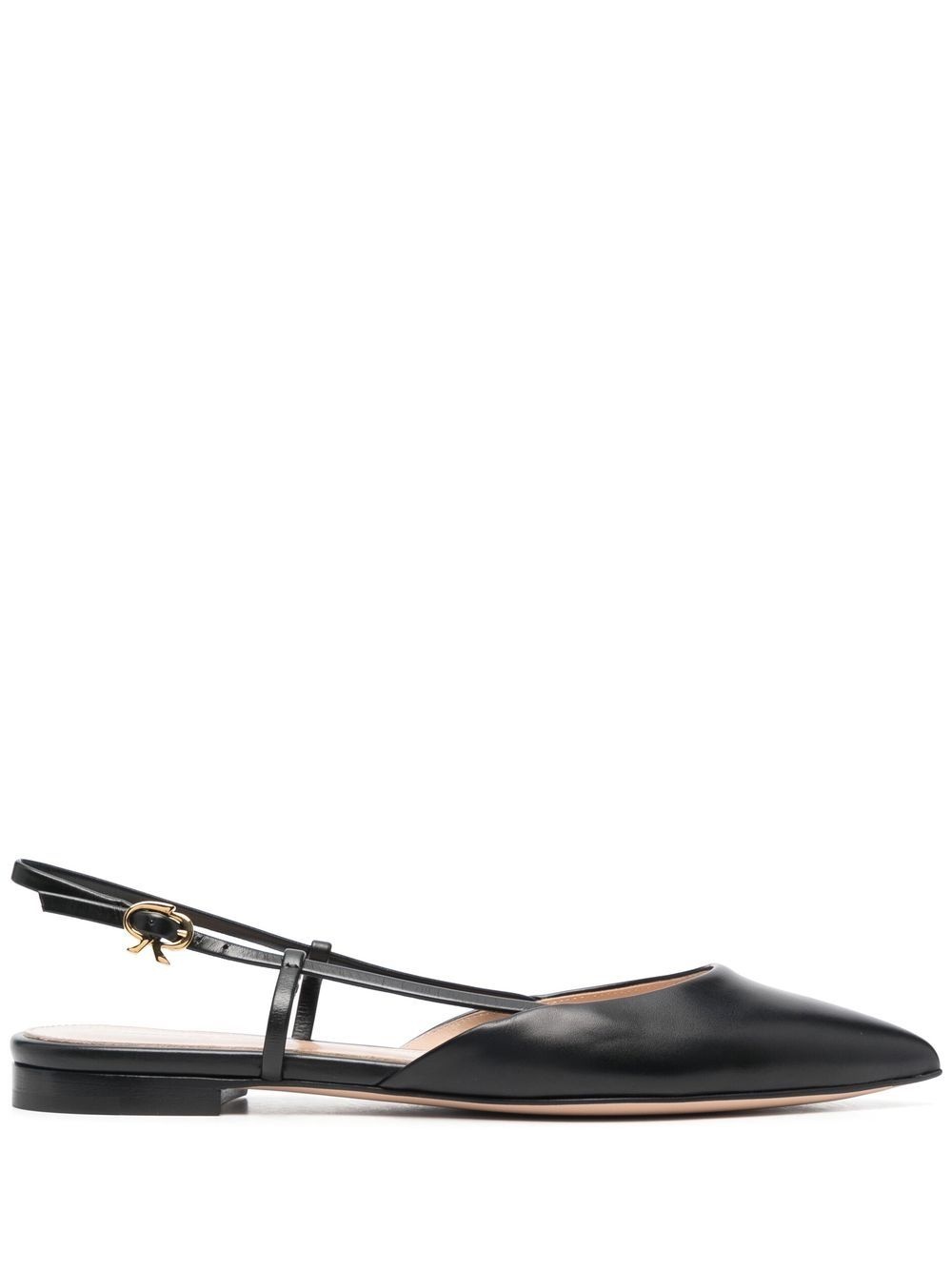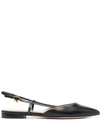 Ascent 05 slingback ballerina shoes Gianvito Rossi's Ascent 05 slingback flats are made from smooth black leather with side cut-outs revealing a glimpse of skin. Notice the whimsical gold-tone ribbon hardware at the buckle-fastening ankle strap. Highlights - Black - Leather - Pointed toe - Buckle-fastening slingback strap - Low stacked heel - Branded leather insole Made in Italy Composition Outer: Calf Leather 100% Lining: Calf Leather 100% Sole: Calf Leather 100% SIZE & FIT Measurement HEEL 0.78 in(2 cm)