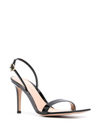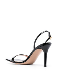 85mm Ribbon Stiletto leather sandals Highlights - Jet black - Calf leather - Patent finish - Branded leather insole - Single toe strap - Square toe - Open toe - Logo-buckle fastening - 85mm high heel Made in Italy Composition Outer: Patent Calf Leather 100% Lining: Calf Leather 100% Sole: Calf Leather 100% SIZE & FIT Measurement HEEL 3.54 in(9 cm)