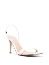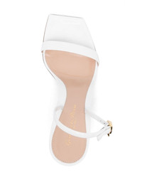 Ribbon Stiletto 85mm leather sandals Highlights - Optical white - Calf leather - Patent finish - Branded leather insole - Single toe strap - Square toe - Open toe - Logo-buckle fastening - 85mm high heel Made in Italy Composition Lining: Calf Leather 100% Outer: Calf Leather 100% Sole: Calf Leather 100% SIZE & FIT Measurement HEEL 3.54 in(9 cm)