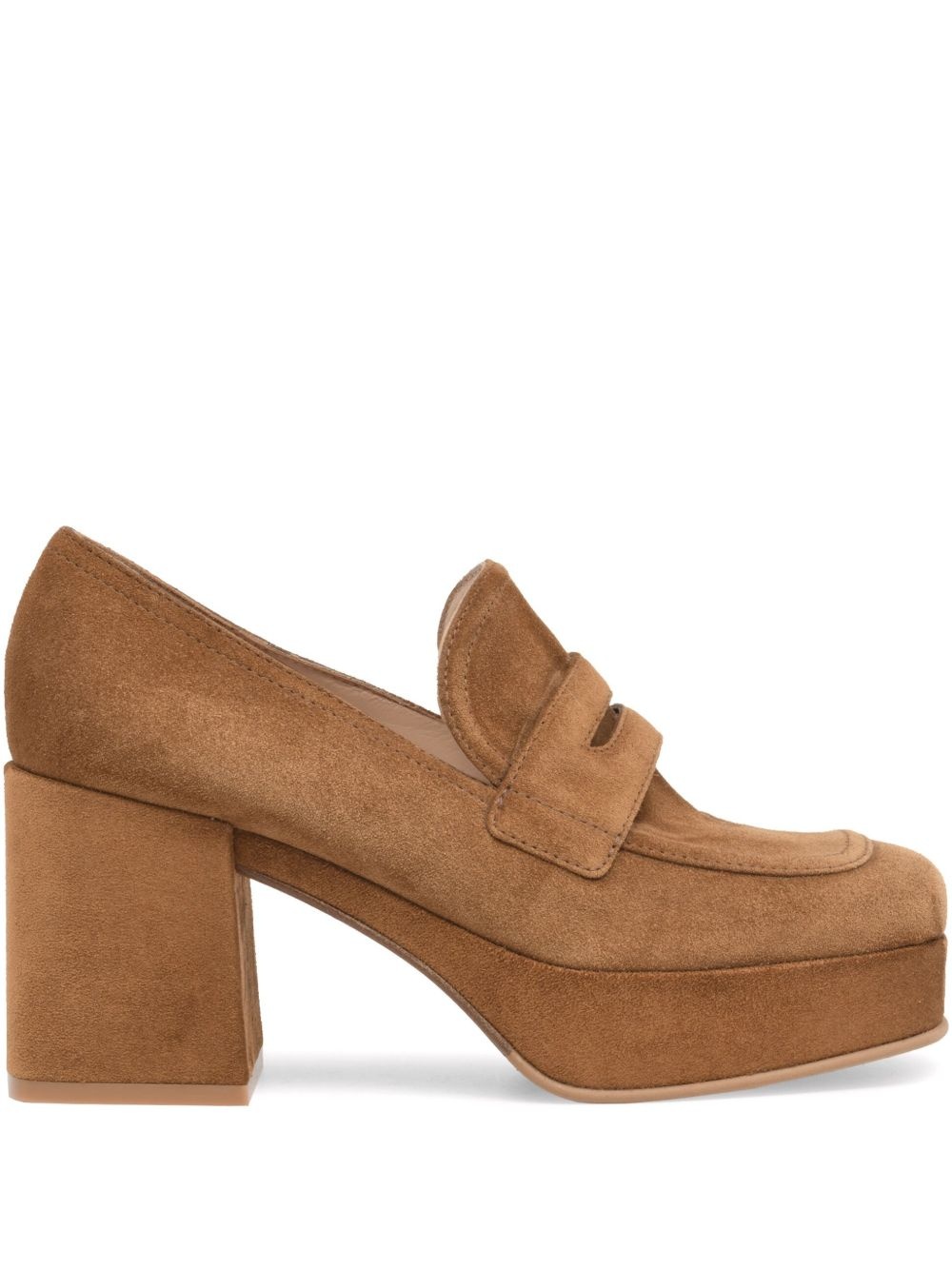 Rouen platform loafers Highlights - Brown - Suede - Block heel - Penny slot - Square toe - Platform sole Made in Italy Composition Sole: Leather 100% Lining: Fabric 100% Outer: Suede 100%