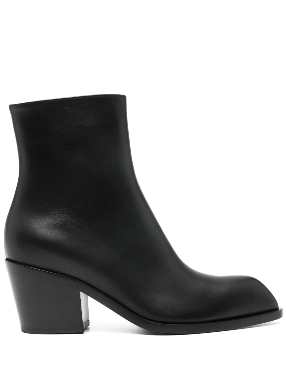 Wednesday leather ankle boots Highlights - Black - Calf leather - Smooth grain - Polished finish - Pointed toe - Ankle-length - Side zip fastening - Branded leather insole - 70mm mid block heel - Leather sole Made in Italy Composition Outer: Calf Leather 100% Sole: Calf Leather 100% Lining: Calf Leather 100% SIZE & FIT Measurement CIRCUMFERENCE 10.23 in(26 cm) HEEL 2.75 in(7 cm) HEIGHT 5.9 in(15 cm) Sole height 0.39 in(1 cm)