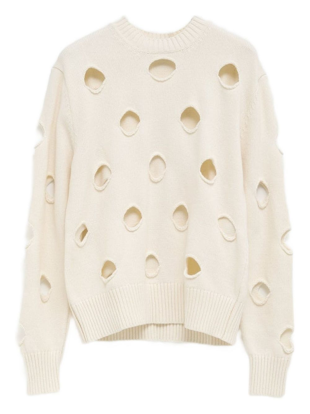 cut-out cotton sweater Highlights - Off-white - Cotton - Cut-out detailing - Round neck - Long sleeves - Ribbed hem Imported Composition Cotton 100% Washing instructions Read Manufacturer Guidelines