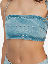 Luna studded-detail denim top Highlights - Blue - Denim - Silver-tone stud embellishment - Straight neckline - Adjustable straps Imported Composition Cotton 70%, Lyocell 30% Washing instructions Machine Wash