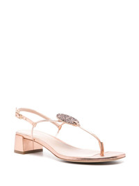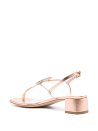 35mm laminated leather sandals Highlights - Coral pink - Calf leather - Laminated finish - Almond open toe - Thong strap - Rhinestone embellishment - Branded leather insole - Leather sole - 35mm mid block heel - Buckle-fastening slingback strap Made in Italy Composition Outer: Calf Leather 100% Sole: Calf Leather 100% Lining: Calf Leather 100% SIZE & FIT Measurement HEEL 1.57 in(4 cm)