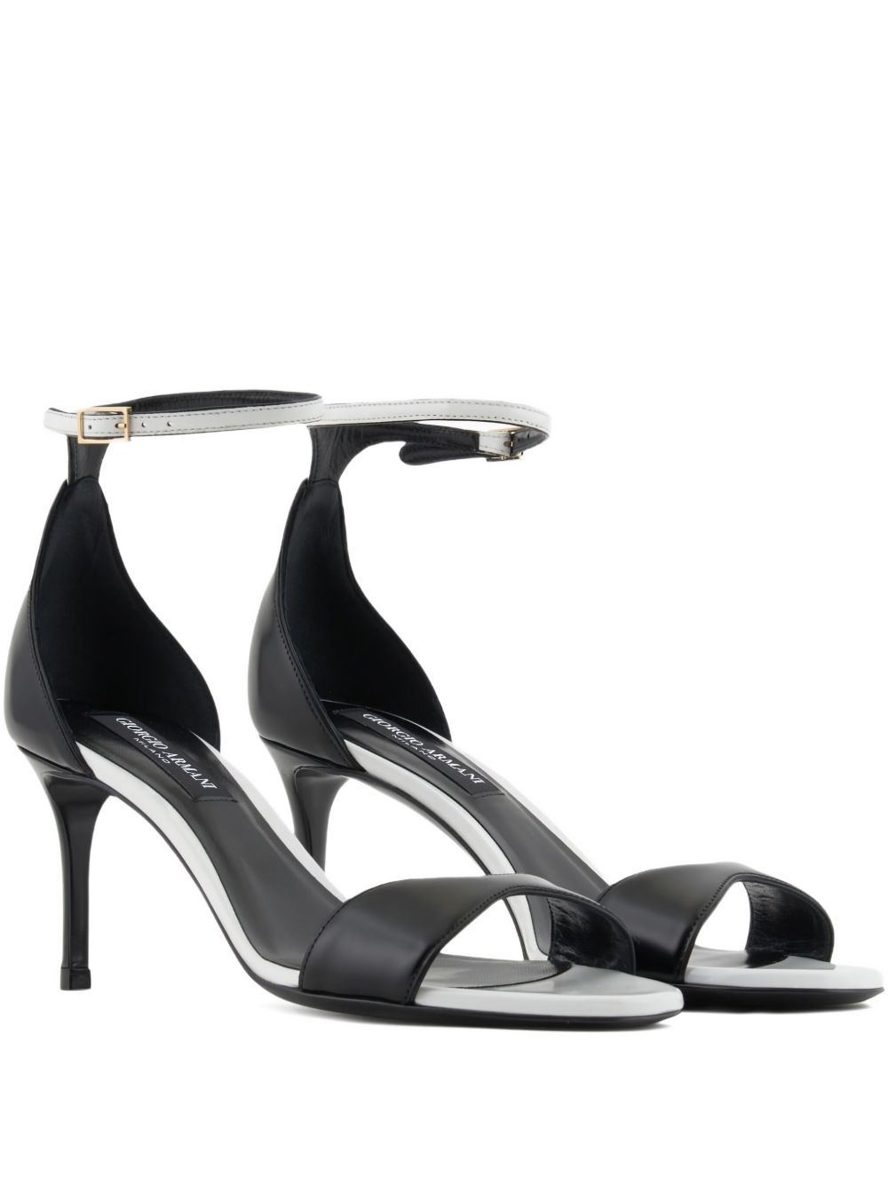 70mm two-tone leather sandals Highlights - Black - Two-tone design - Leather - Buckled ankle strap - Open toe - Stiletto heel Made in Italy Composition Calf Leather 100%