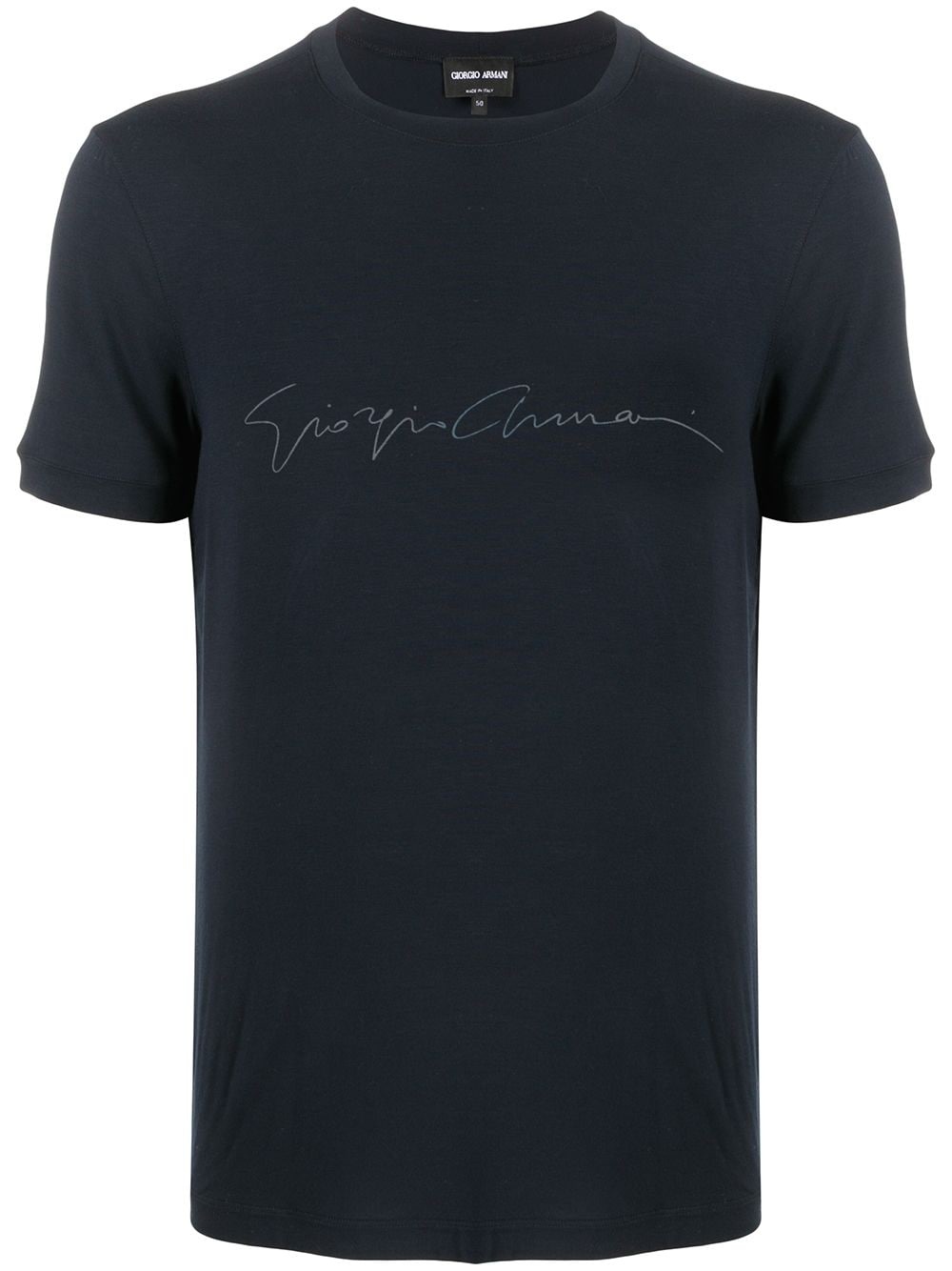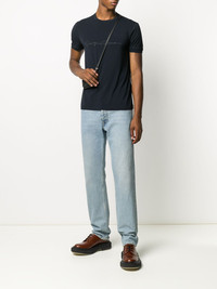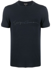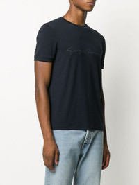 branded T-shirt Highlights - Dark blue - Embroidered logo to the front - Crew neck - Short sleeves Made in Italy Composition Viscose 90%, Spandex/Elastane 10% SIZE & FIT Model measurements Height 6 ft 2 in(1.89 m) Bust/Chest 35.43 in(90 cm) Hips 36.61 in(93 cm) Waist 28.74 in(73 cm) FittingInformation This piece fits true to size. We recommend you get your regular size Cut for a slim fit Made with a mid-weight stretch fabric Measurement CHEST 40.15 in(102 cm) Shoulder Width 16.14 in(41 cm) WAIST 39.37 in(100 cm) Washing instructions Hand Wash