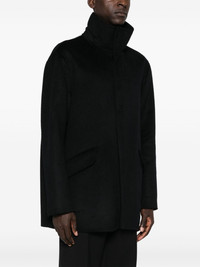 brushed coat Highlights - Midnight blue - Brushed finish - Concealed front zip fastening - High neck - Long sleeves - Front flap pocket - Central rear vent - Partial lining - Straight hem Made in Italy Composition Lining: Acetate 63%, Viscose 37% Outer: Cashmere 97%, Polyester 3% SIZE & FIT Model measurements Height 6 ft 2 in(1.87 m) Bust/Chest 36.41 in(92.5 cm) Hips 37 in(94 cm) Waist 29.52 in(75 cm) FittingInformation Designed for a regular fit, allowing for a comfortably loose fit throughout the body The vented hem offers movement at the rear Made from a midweight non-stretch fabric