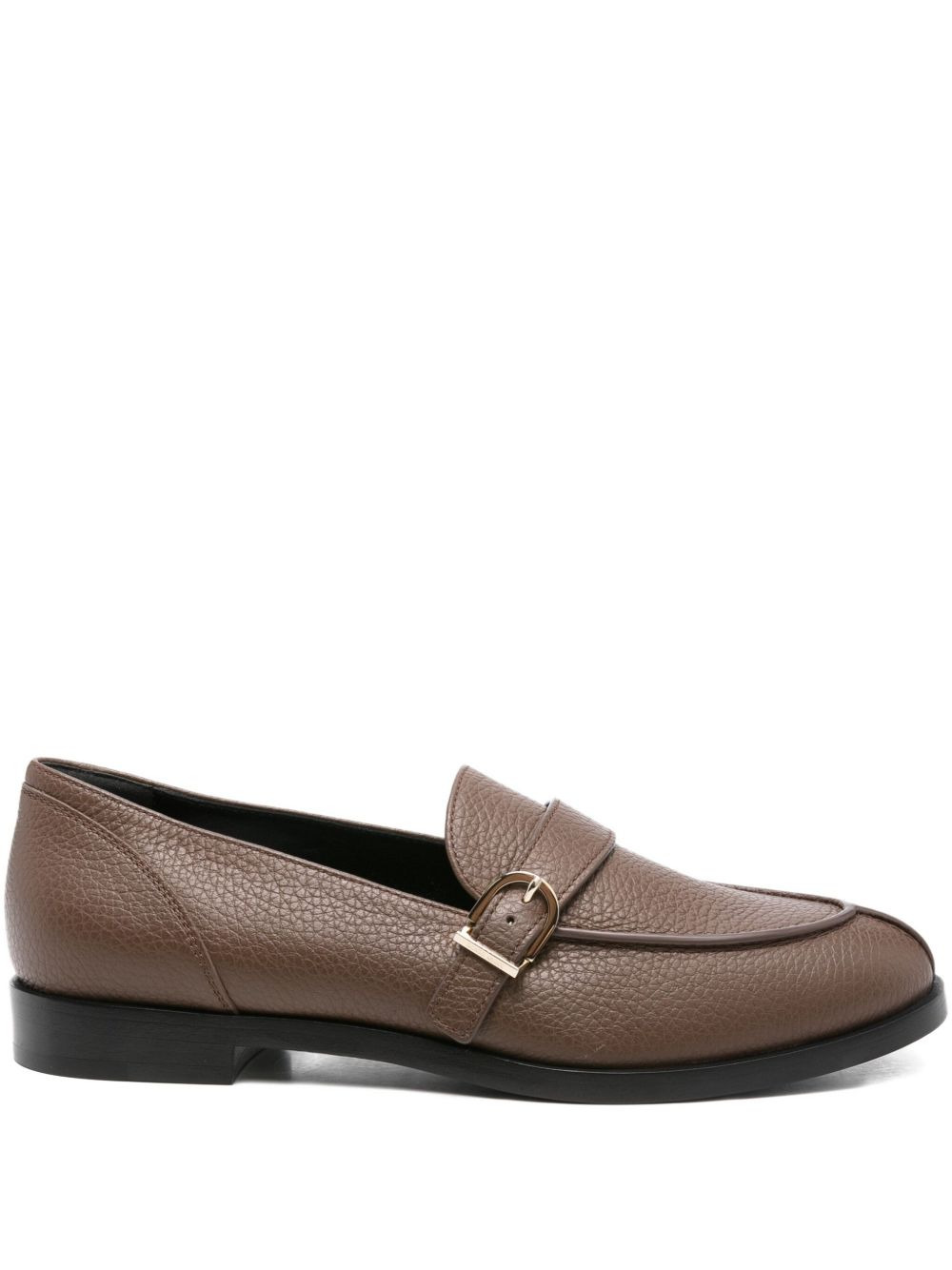 buckle-detail leather loafers Highlights - Brown - Calf leather - Single buckle fastening - Textured leather - Pointed toe - Flat sole Made in Italy Composition Lining: Calf Leather 100% Sole: Calf Leather 100%, Rubber 100% Outer: Calf Leather 100%