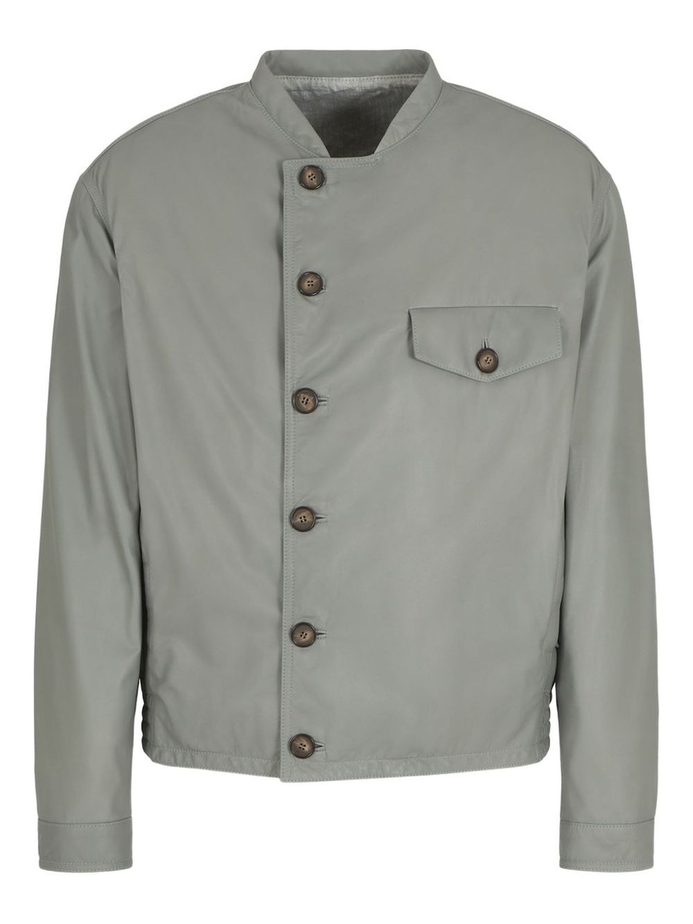 button-fastening jacket Highlights - Grey - Mandarin collar - Button fastening - Chest pocket - Long sleeves - Straight hem Made in Italy Composition Outer: Calf Leather 100% Lining: Flax 100%, Viscose 100% Washing instructions Read Manufacturer Guidelines