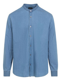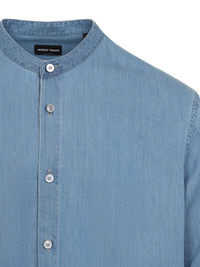 collarless buttoned shirt Highlights - Light blue - Collarless - Front button fastening - Long sleeves - Buttoned cuffs Made in Italy Composition Cotton 100% Washing instructions Read Manufacturer Guidelines