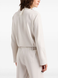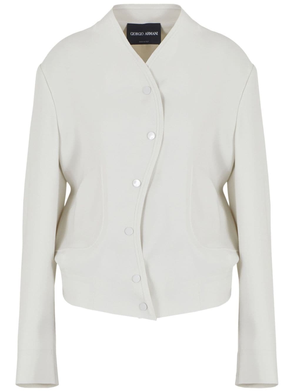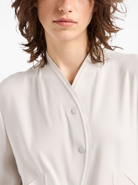 collarless drop-shoulder jacket Highlights - Ecru - Tonal stitching - Collarless - Front button fastening - Drop shoulder - Long sleeves - Two front patch pockets - Straight hem Imported Composition Polyester 100%