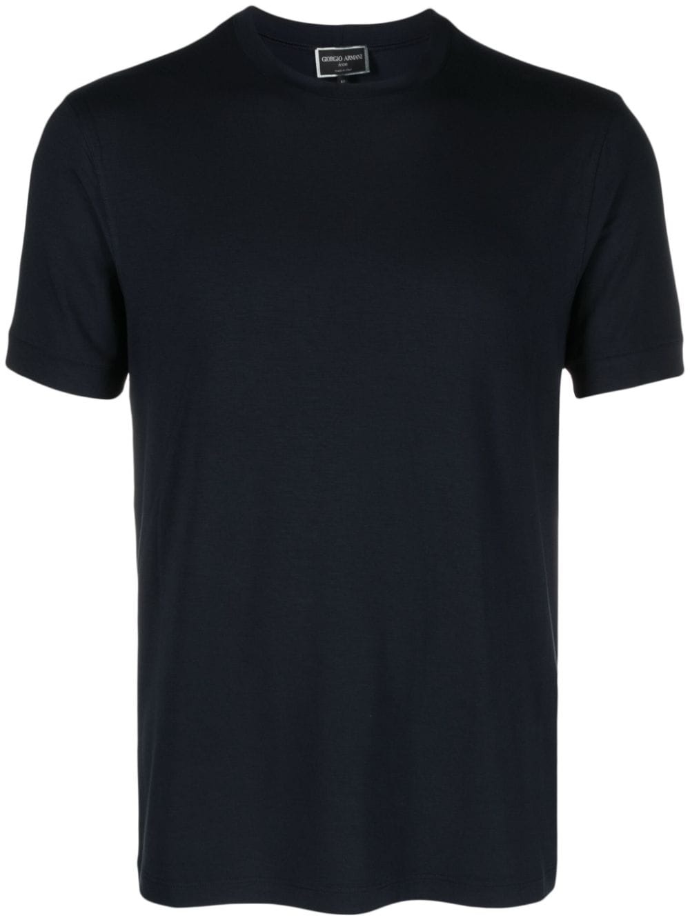 crew-neck jersey T-shirt Highlights - Navy blue - Jersey texture - Slim cut - Crew neck - Short sleeves - Straight hem Made in Italy Composition Viscose 90%, Spandex/Elastane 10% SIZE & FIT Model measurements Height 6 ft 2 in(1.87 m) Bust/Chest 36.41 in(92.5 cm) Hips 35.43 in(90 cm) Waist 29.52 in(75 cm) FittingInformation Designed for a regular fit allowing for a comfortably loose fit throughout the body Made from a midweight stretch fabric, this piece offers elasticity and flexibility when worn This piece fits true to size – take your usual size