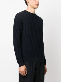 crew-neck knitted jumper Highlights - Midnight blue - Virgin wool blend - Knitted construction - Vertical stripe pattern - Crew neck - Long sleeves - Ribbed edge Made in Italy Composition Virgin Wool 94%, Polyester 6% SIZE & FIT Model measurements Height 6 ft 2 in(1.87 m) Bust/Chest 36.41 in(92.5 cm) Hips 35.43 in(90 cm) Waist 29.52 in(75 cm) FittingInformation Designed for a relaxed fit, this piece allows for comfort and movement when worn Made with a midweight knit, this piece offers some stretch This piece fits true to size – take your usual size