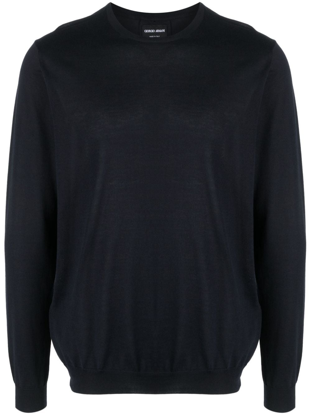 crew-neck silk-cotton jumper Highlights - Midnight blue - Silk-cotton blend - Crew neck - Long sleeves - Ribbed cuffs and hem Made in Italy Composition Silk 58%, Cotton 42% SIZE & FIT Model measurements Height 6 ft 0 in(1.84 m) Bust/Chest 35.82 in(91 cm) Hips 37 in(94 cm) Waist 28.34 in(72 cm)
