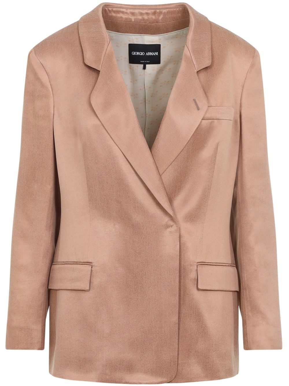 double-breasted blazer Highlights - Coral pink - Double-breasted button fastening - Chest welt pocket - Two side flap pockets - English rear vents Made in Italy Composition Viscose 58%, Cupro 42%
