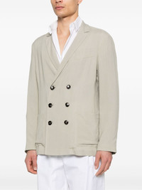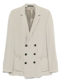 double-breasted blazer Highlights - Taupe - Front button fastening - Chest welt pocket - Two side patch pockets - Partial lining Made in Italy Composition Lining: Cupro 100% Outer: Cupro 100% SIZE & FIT Model measurements Height 6 ft 1 in(1.85 m) Bust/Chest 35.82 in(91 cm) Hips 37.79 in(96 cm) Waist 29.13 in(74 cm) FittingInformation Designed for a slim fit, offering a comfortable fit that sits just away from the body Made from a midweight non-stretch fabric