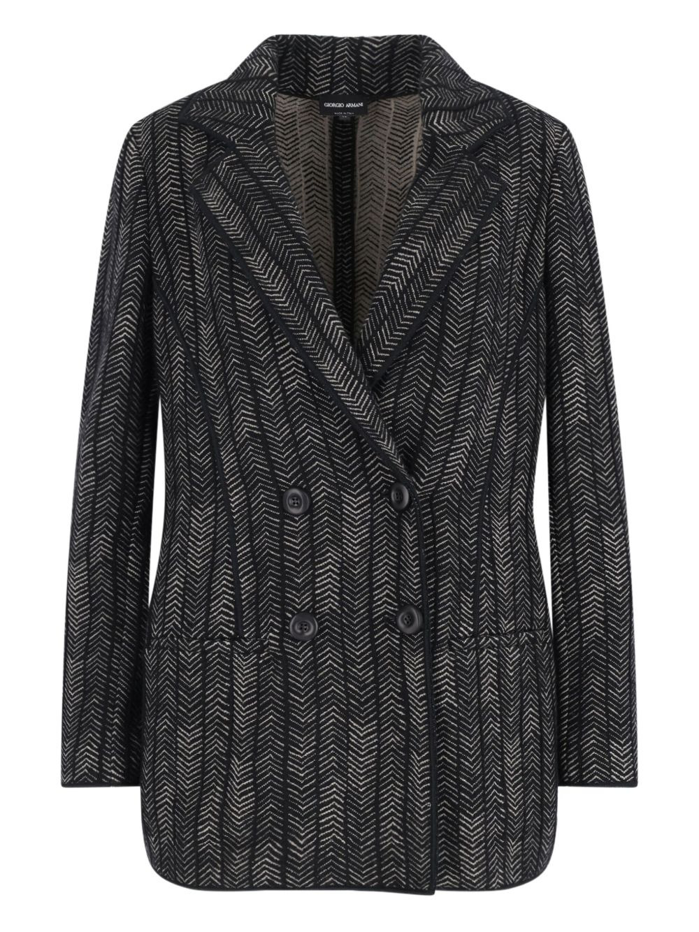 double-breasted blazer Highlights - Black - Herringbone pattern - Double-breasted fastening - Notched lapel - Long sleeves - Button closure Made in Italy Composition Cashmere 53%, Viscose 40%, Polyamide 6%, Elastane 1% Washing instructions Read Manufacturer Guidelines