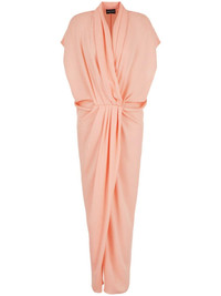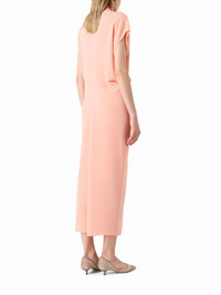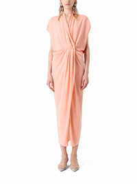 draped silk midi dress Highlights - Light orange - Silk - Tonal stitching - Draped detailing - V-neck - Cap sleeves - Fitted waistline - Front slit - Straight hem - Mid-length Made in Italy Composition Silk 100%