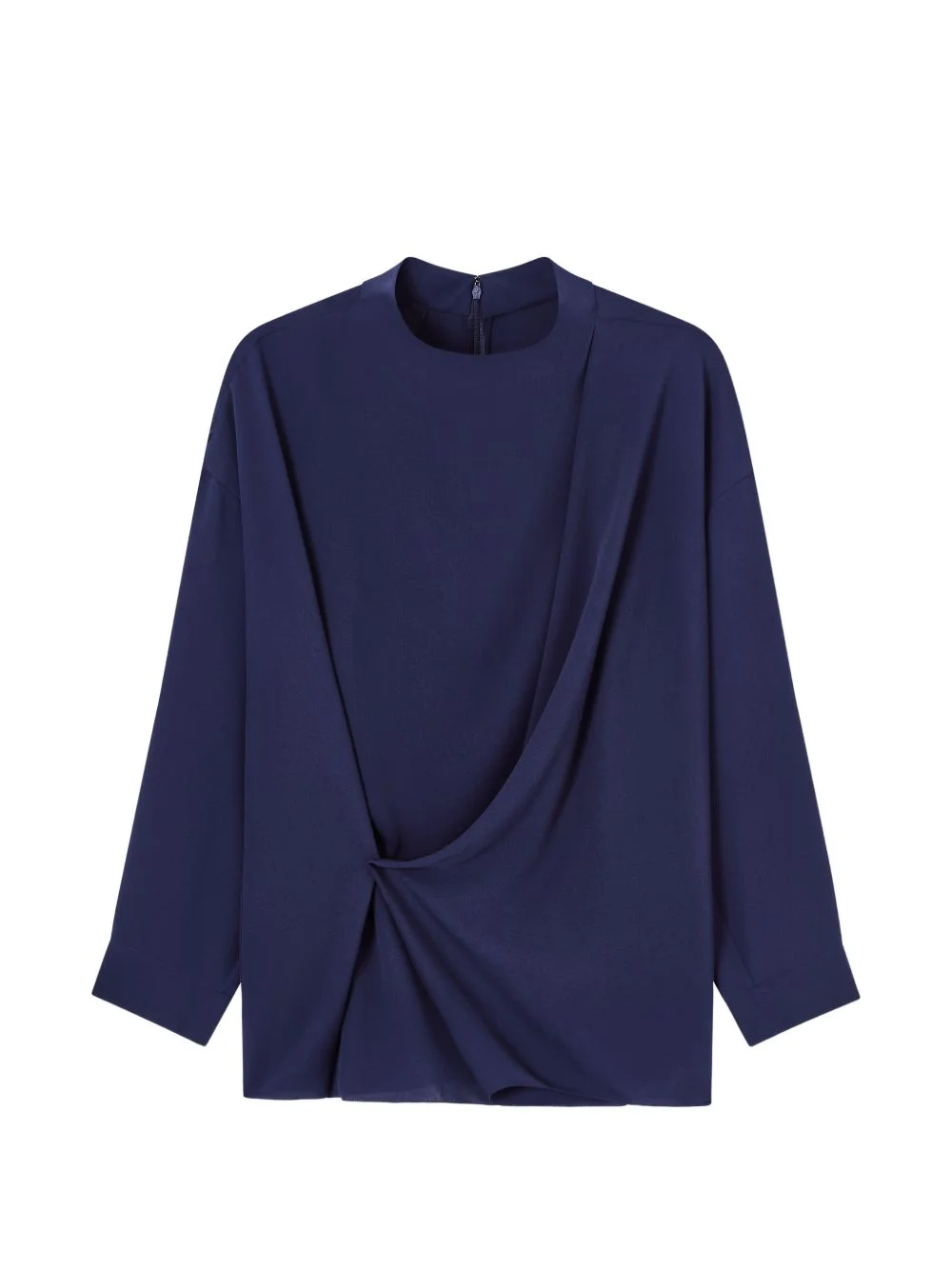 draped twisted shirt Highlights - Blue - Silk - Draped detailing - Twist detail - Long sleeves - Round neck - Concealed rear zip fastening Made in Italy Composition Silk 100% Washing instructions Read Manufacturer Guidelines