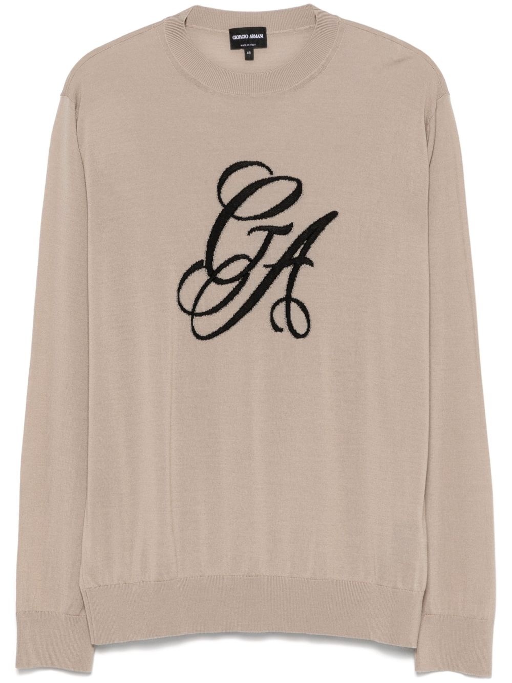 embroidered-logo sweater Highlights - Light brown - Ribbed cuffs and hem - Crew neck - Long sleeves Made in Italy Composition Virgin Wool 100%
