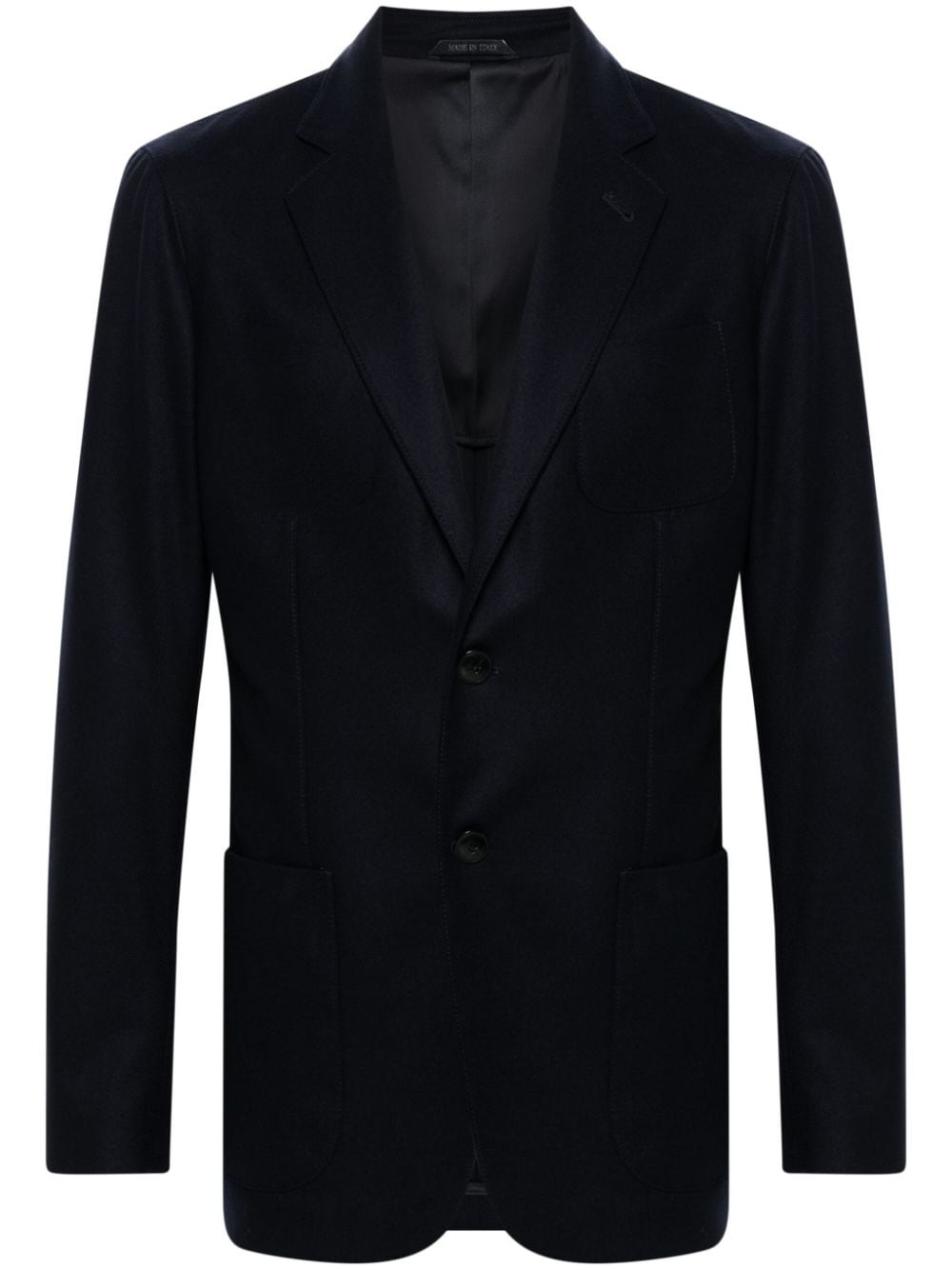 felted blazer Highlights - Navy blue - Stretch cashmere - Felted finish - Front button fastening - Notched lapels - Long sleeves - Buttoned cuffs - Three front patch pockets - Partial lining - Straight hem Made in Italy Composition Outer: Cashmere 96% Elastane 4% SIZE & FIT Model measurements Height 6 ft 2 in(1.87 m) Bust/Chest 38.18 in(97 cm) Hips 36.61 in(93 cm) Waist 29.13 in(74 cm) FittingInformation Designed for a slim fit, offering a comfortable fit that sits just away from the body The vented hem offers movement at the rear Made from a midweight stretch fabric, this piece offers elasticity and flexibility when worn