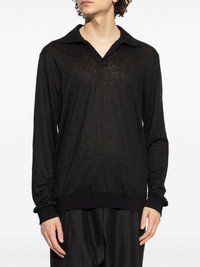 fine-knit T-shirt Highlights - Black - Ribbed cuffs and hem - Polo collar - Long sleeves Made in Italy Composition Linen/Flax 100%
