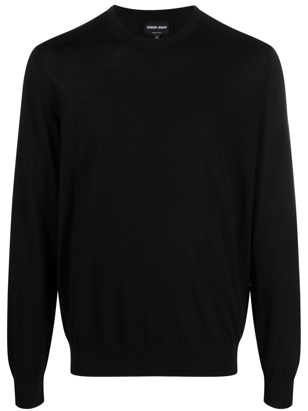 fine knit virgin-wool jumper black virgin wool fine knit round neck long sleeves ribbed cuffs ribbed edge Made in Italy Composition Virgin Wool 100% SIZE & FIT Model measurements Height 6 ft 2 in(1.87 m) Bust/Chest 35.82 in(91 cm) Hips 35.43 in(90 cm) Waist 27.95 in(71 cm) FittingInformation This piece fits true to size. We recommend you get your regular size Cut for a relaxed fit Made with a mid-weight fabric Washing instructions Hand Wash