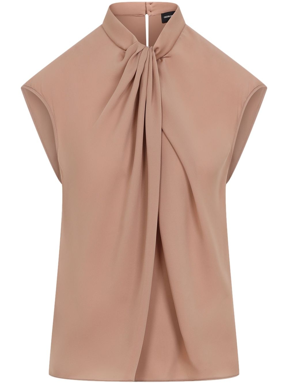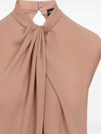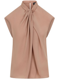 gathered blouse Highlights - Pink - Rear button fastening - Mock neck - Sleeveless - Straight hem Imported Composition Silk 100%