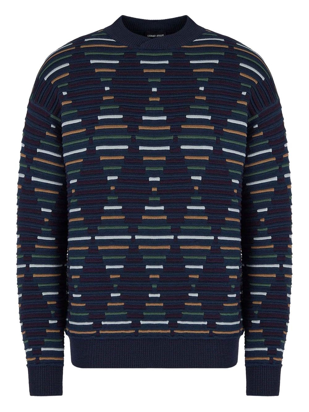 geometric-jacquard sweater Highlights - Navy blue - Crew neck - Drop shoulder - Long sleeves - Ribbed cuffs and hem Made in Italy Composition Virgin Wool 100%