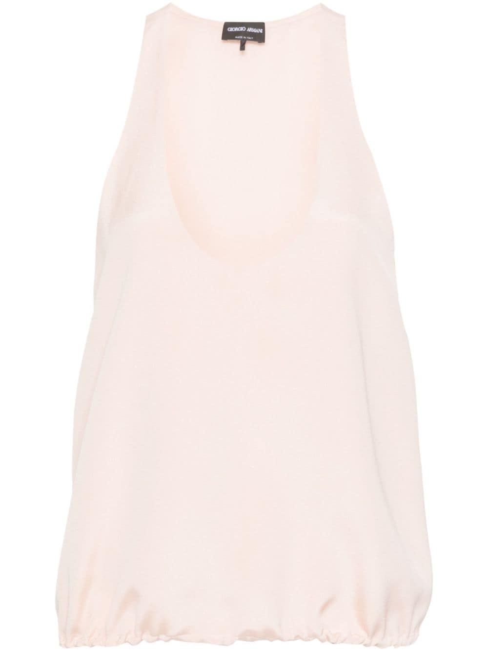 elasticated hem silk sleeveless top Highlights - Coral pink - Interlock weave - Glitter detailing - Scoop neck - Sleeveless - Elasticated straight hem - Full lining Made in Italy Composition Cupro 56%, Silk 44% SIZE & FIT Model measurements Height 5 ft 11 in(1.8 m) Bust/Chest 32.67 in(83 cm) Hips 36.22 in(92 cm) Waist 24.4 in(62 cm) FittingInformation Designed for a relaxed fit, this piece allows for comfort and movement when worn Made from a lightweight non-stretch fabric This piece fits true to size – take your usual size