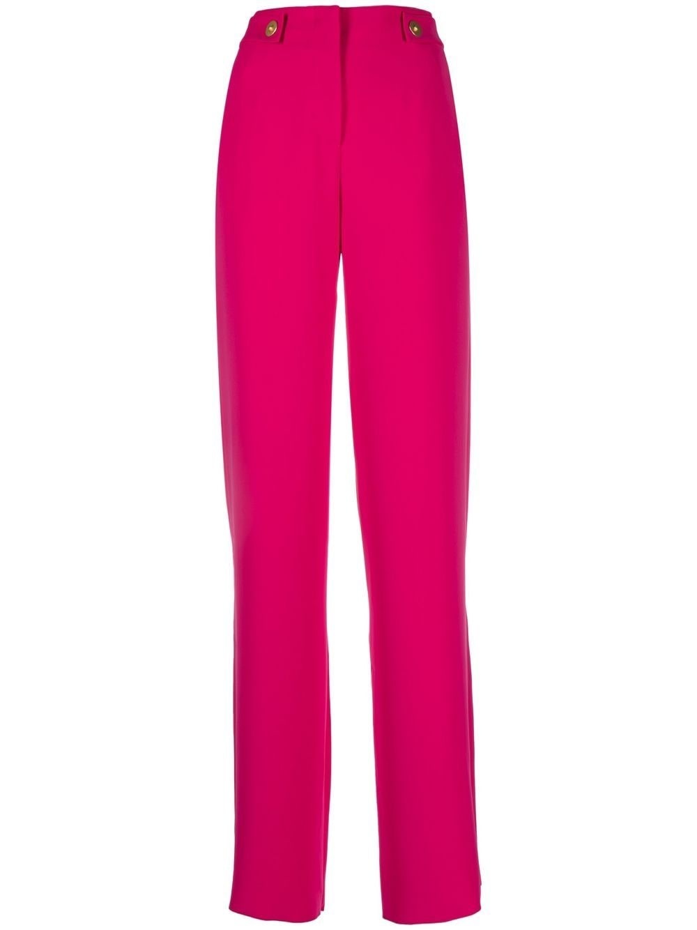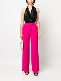 high-waist wide-leg trousers hot pink high-waisted wide leg gold-tone hardware concealed front fastening Made in Italy Composition Polyester 100% SIZE & FIT Model measurements Height 5 ft 11 in(1.8 m) Bust/Chest 31.49 in(80 cm) Hips 35.43 in(90 cm) Waist 24.4 in(62 cm) FittingInformation This piece fits true to size. We recommend you get your regular size Designed to be fitted at the waist and hips, loose over the leg Made with a mid-weight fabric