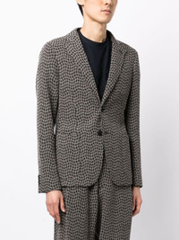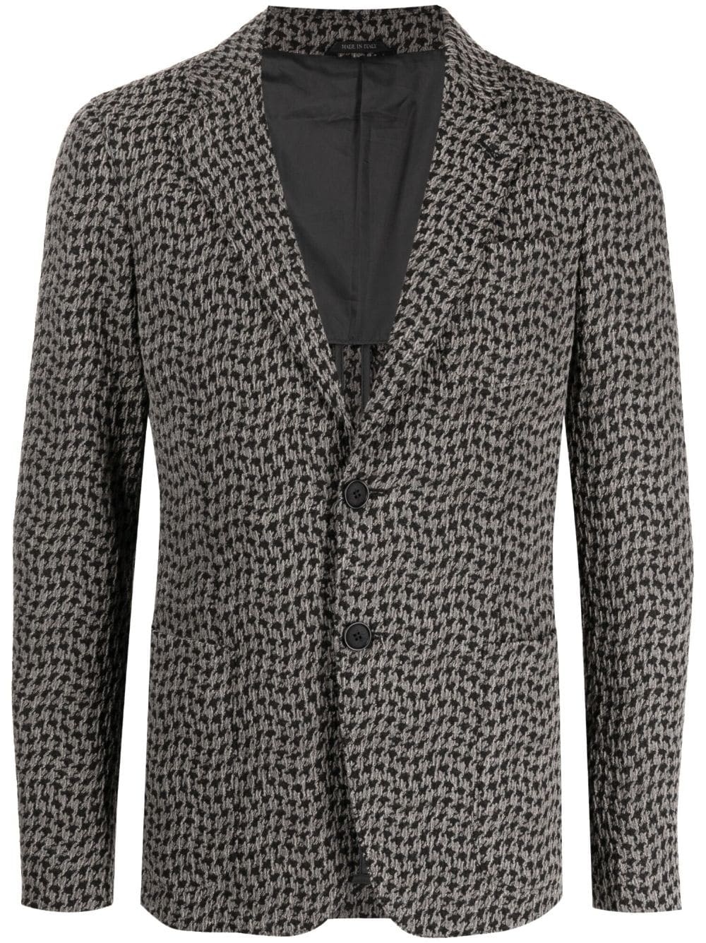 houndstooth-pattern single-breasted blazer Highlights - Black/taupe brown - Houndstooth pattern - Knitted construction - Narrow notch lapels - Front button fastening - Two front patch pockets - Chest patch pocket - Long sleeves - Buttoned-cuff sleeves - Straight hem Made in Italy Composition Body: Viscose 55%, Virgin Wool 36%, Polyamide 8%, Elastane 1% Lining: Cupro 94%, Elastane 6% SIZE & FIT Model measurements Height 6 ft 2 in(1.87 m) Bust/Chest 34.25 in(87 cm) Hips 36.22 in(92 cm) Waist 29.52 in(75 cm) FittingInformation Designed for a slim fit, offering a comfortable fit that sits just away from the body The vented hem offers movement at the rear Made from a midweight non-stretch fabric This piece fits true to size – take your usual size