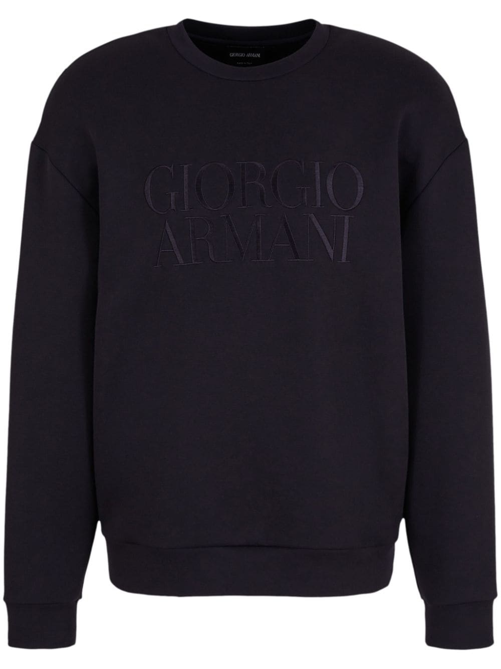 logo-embroidered round-neck jumper Highlights - Midnight blue - Embroidered logo - Round neck - Long sleeves - Straight hem Made in Italy Composition Polyamide 52%, Modal 48%