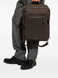 logo-motif backpack Highlights - Dark brown - Textured leather panel - Front zip pocket - Adjustable shoulder straps - Top handle Made in Italy Composition Outer: Polyurethane 100%, Calf Leather 100%, Polyester 50%, Recycled Polyester 50% Lining: Polyester 100% SIZE & FIT Measurement DEPTH 5.51 in(14 cm) HEIGHT 16.53 in(42 cm) WIDTH 11.81 in(30 cm)