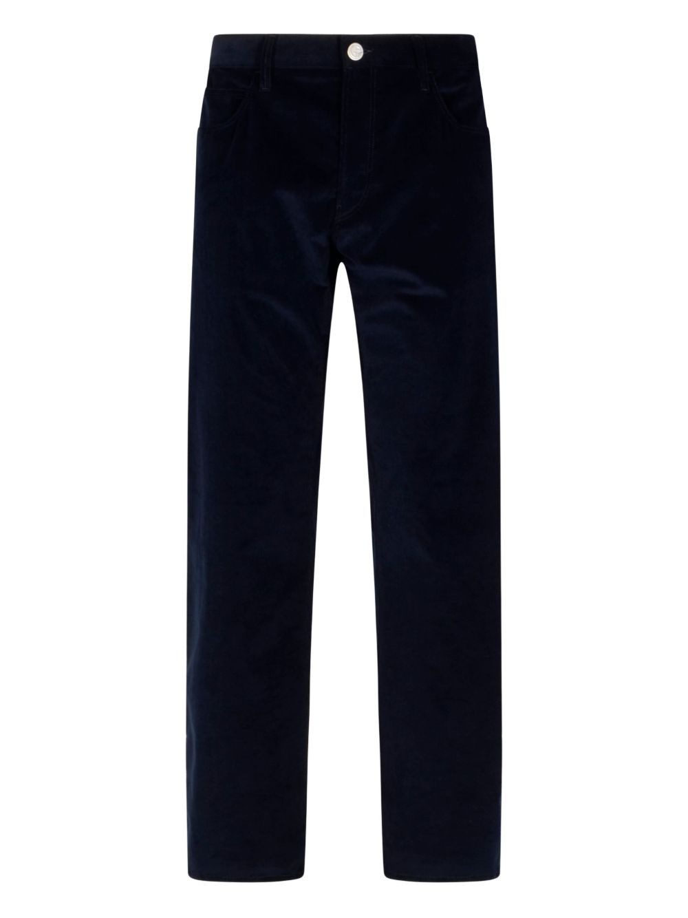 logo-patch corduroy trousers Highlights - Dark blue - Corduroy texture - Logo label - Button fastening - Rear patch-pockets Made in Italy Composition Cotton 91%, Cashmere 7%, Elastane 2% Washing instructions Read Manufacturer Guidelines