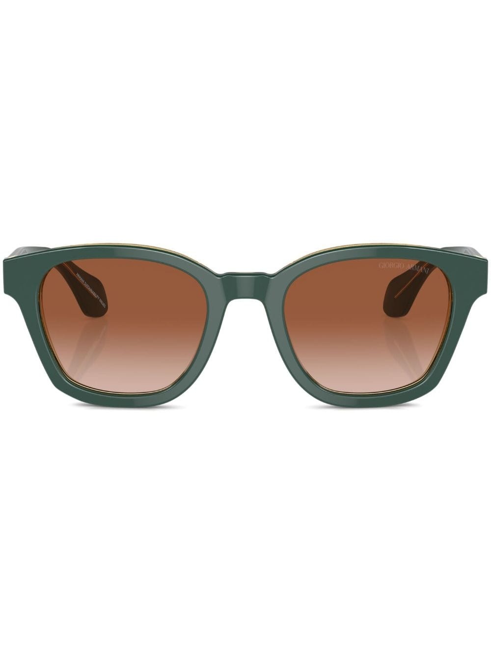 logo-print oversize-frame sunglasses Highlights - Dark green - Acetate - Oversize frame - Gradient lenses - Logo print at the arm - Straight arms - Curved tips - These glasses come with a protective case. Made in United States Composition Acetate 100%