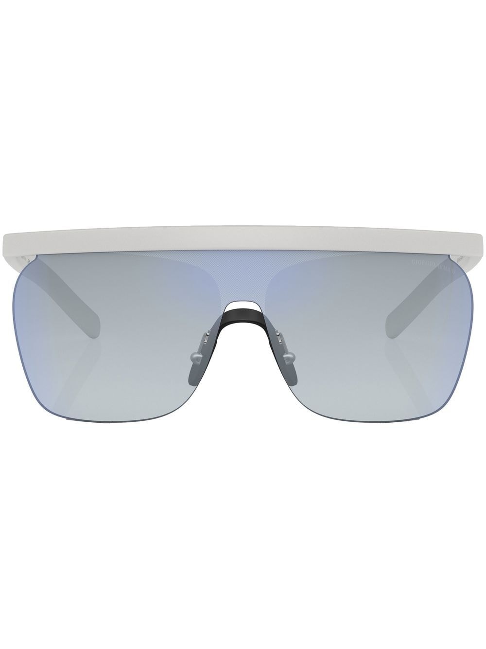 logo-print shield-frame sunglasses white matte finish logo print to the front logo print at the arm shield frame curved tips All glasses from FARFETCH are sold as non-prescription frames. These glasses come with a protective case. Made in United States Composition Acetate 100%